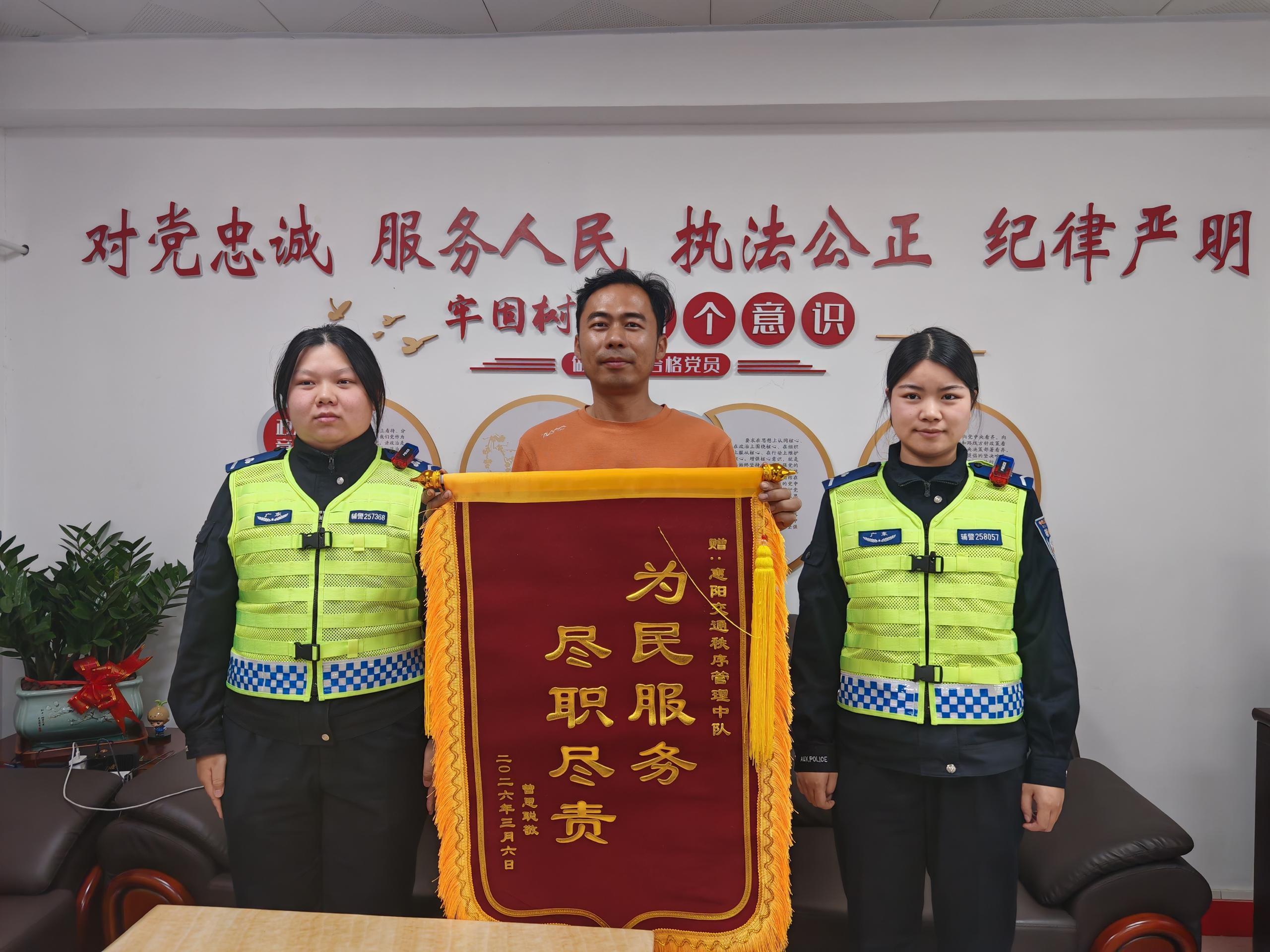 原来,3月2日8时许,惠州市惠阳区公安分局交管大队执勤警员黄海倩、胡敏正在金惠大道金惠岗(市民乐园红绿灯路口)疏导交通时,一名热心群众将刚刚捡到的一个钱包交到她们手中,希望帮忙寻找失主。两名警员打开钱包查看,发现里面有近千元现金及两张收货单,但没有失主的联系方式。两名警员立即向值班领导汇报情况,并将钱包带回单位妥善保管。