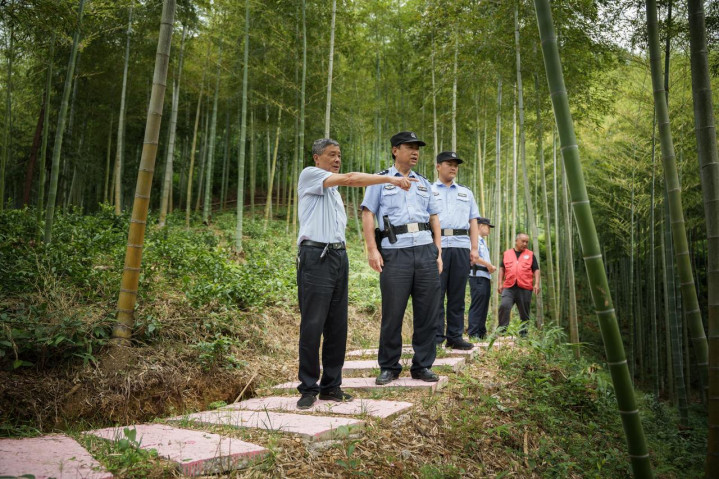 他名叫张忠心,今年55岁,年轻时在体校练过田径,当过兵,还做过一年中学体育老师,现在是浙江安吉天荒坪派出所民警,也是大余村生态警务联勤共治工作站的站长。