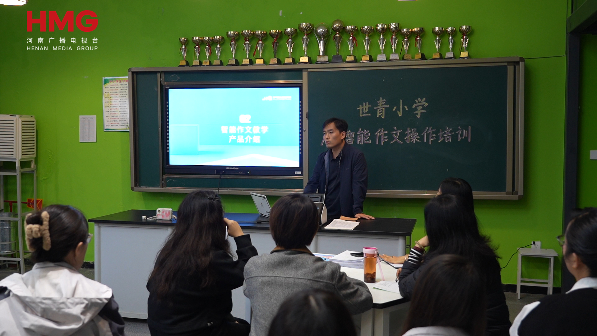 9月22日,在新乡市红旗区世青小学,一场针对小学生智能作文教学平台的培训会正在进行。现场,授课老师讲解并展示了利用人工智能技术开发的教学平台,该平台面向中小学语文作文教学工作,可实现从作文采集、AI评改、数据分析和课堂讲评等全流程数字化管理,辅助教师更高效开展作文评阅。