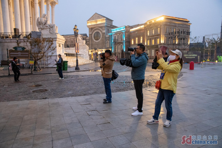 当日下午,采风团的最后一站抵达了充满无限可能的乐陵影视城。仿佛从厚重的历史与坚实的产业中瞬间穿越,摄影师们步入了一个由光影艺术构筑的“造梦空间”。影视城内,仿古街区、民国风情、现代场馆等各具特色的建筑群鳞次栉比,为镜头提供了绝佳的构图素材。